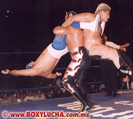 This is a trademark move done by Ultimo Guerrero. He will pick one opponent up for a Power Bomb and hold them up in the air while one of his partners hangs another opponent on his back. Ultimo then spins around for a few seconds before dropping both opponents to the mat.