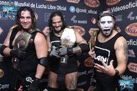 Sombra, Dorada and Mascara were not a regular unit, similar to the previous tecnico champions. The trios had only teamed up one time, eight months prior to this title program. Mascara was part of the previous champion trio, Mascara Dorada has just returned from a trip to NJPW and Sombra was headed to NJPW a few weeks later. Sombra became a double champion, also holding the CMLL World Tag Team Championship with Volador Jr., while Mascara Dorada became a triple champion (Mexican National Trios Championship w/Metro & Stuka Jr. & CMLL World Super Lightweight Championship).