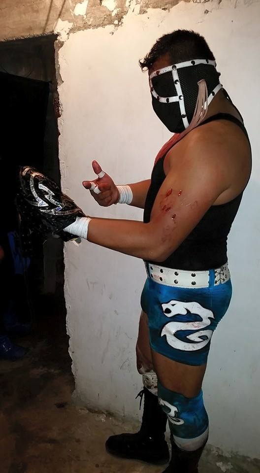 Sértico after win Código Negro's mask in Arena El Jaguar, Monterrey.